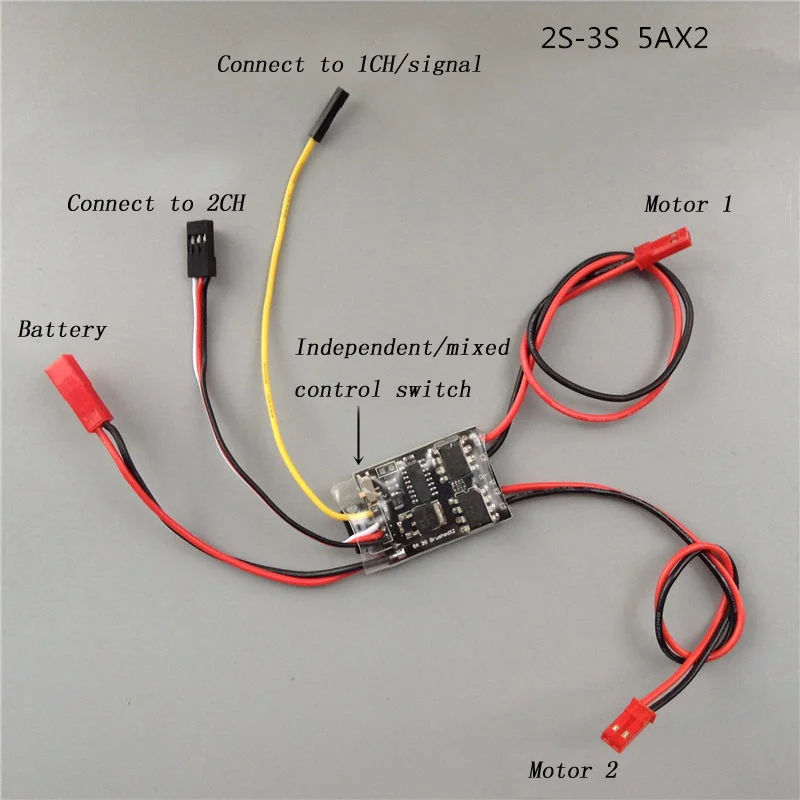 ORIGINAL 1PCS Dual Way Bidirectional Brushed ESC 2S-3S Lipo 5A Speed Control for RC Model Boat/Tank 130 180