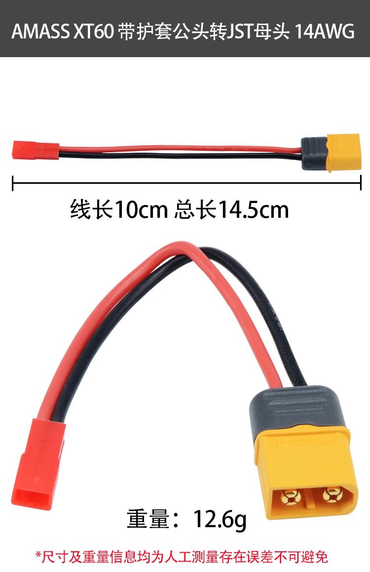 TOP Amass Cable XT60 Male Plug to Jst FeMale Plug Connector for RC Model Drone Adapter Wirings Spare Pa